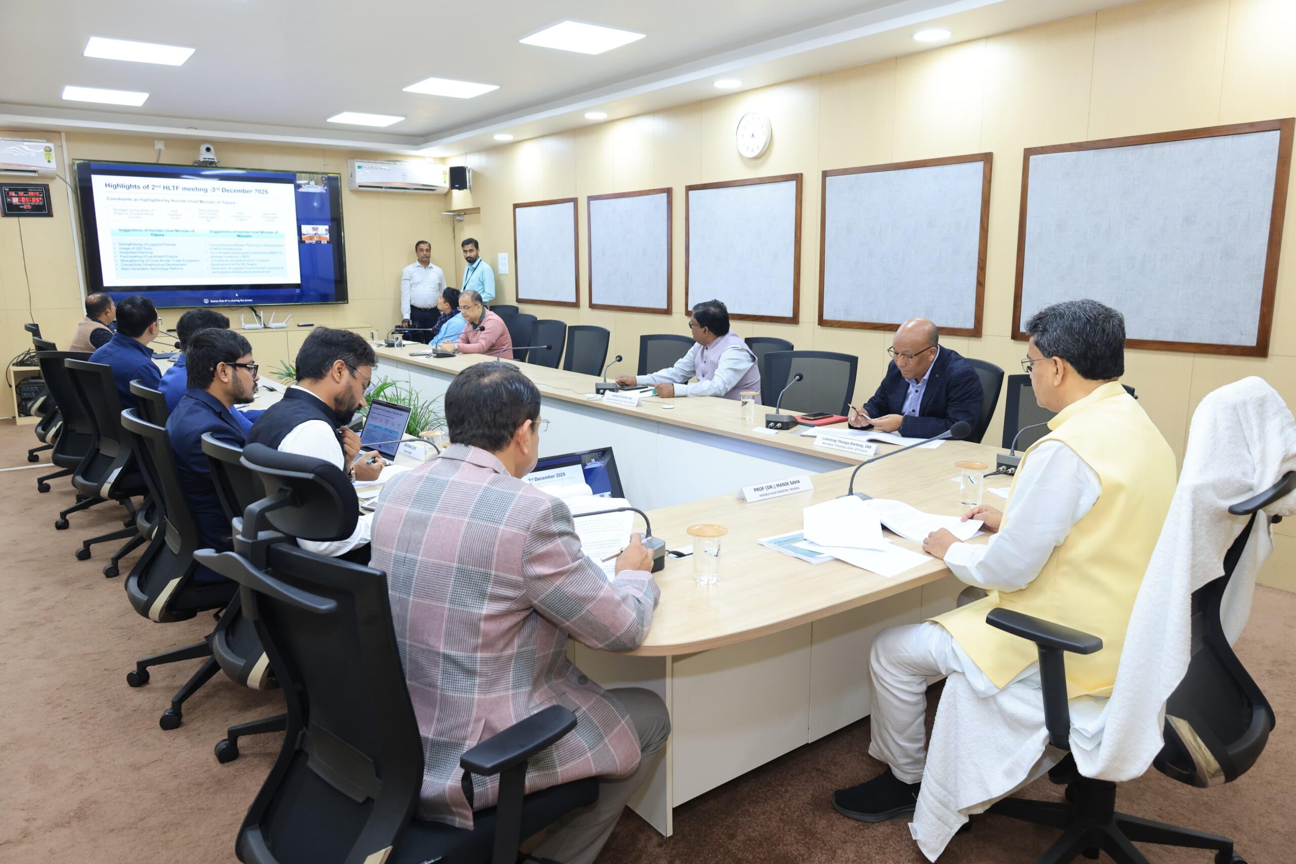 আগরতলা, ২২ ডিসেম্বর: উত্তর পূর্বাঞ্চলের রাজ্যগুলিতে পরিকাঠামো এবং যোগাযোগ ব্যবস্থার উন্নয়নে মুখ্যমন্ত্রী প্রফেসর ডাঃ মানিক সাহাকে আহ্বায়ক করে গঠিত উচ্চ পর্যায়ের টাস্ক ফোর্সের তৃতীয় বৈঠক সোমবার অনুষ্ঠিত হয়। কেন্দ্রীয় উত্তর পূর্বাঞ্চল উন্নয়ন (ডোনার) মন্ত্রকের মন্ত্রী জ্যোতিরাদিত্য সিন্ধিয়া ভার্চুয়ালী আয়োজিত এই বৈঠকে সভাপতিত্ব করেন। এই বৈঠকে কেন্দ্রীয় উত্তর পূর্বাঞ্চল উন্নয়ন (ডোনার) মন্ত্রকের মন্ত্রী ছাড়াও মিজোরামের মুখ্যমন্ত্রী লালদুহমা সহ ডোনার মন্ত্রক এবং উত্তর পূর্বাঞ্চলের রাজ্যগুলির পদস্থ আধিকারিকগণ উপস্থিত ছিলেন এবং আলোচনায় অংশ নেন। ত্রিপুরা ইনস্টিটিশন ফর ট্রান্সফরমেশন কার্যালয়ের কনফারেন্স হলে অনুষ্ঠিত এই ভার্চুয়াল বৈঠকে রাজ্যের শিল্প ও বাণিজ্য দপ্তরের সচিব কিরণ গিত্যে, পরিকল্পনা দপ্তরের সচিব এল টি ডার্লং, শিল্প ও বাণিজ্য দপ্তরের অধিকর্তা ড. দীপক কুমার সহ অন্যান্য পদস্থ আধিকারিকগণ উপস্থিত ছিলেন।বৈঠকে মুখ্যমন্ত্রী প্রফেসর ডাঃ মানিক সাহা বলেন, উত্তর পূর্বাঞ্চলের রাজ্যগুলির অগ্রগতি ও উন্নয়নের ব্যাপক সম্ভাবনা রয়েছে। এক্ষেত্রে পরিকাঠামো এবং যোগাযোগ ব্যবস্থার আরও উন্নয়নের লক্ষ্যে উত্তর পূর্বাঞ্চল রাজ্যগুলিকে সম্মিলিতভাবে কাজ করতে হবে। উত্তর পূর্বাঞ্চলের রাজ্যগুলির সড়ক, রেল, বিমান যোগাযোগ, জলপথ, বিদ্যুৎ, গ্যাস এবং ডিজিটাল সংযোগের ক্ষেত্রে যে সমস্যা রয়েছে তা চিহ্নিত করে উচ্চ পর্যায়ের টাস্ক ফোর্সকে সমন্বিতভাবে প্রয়োজনীয় পদক্ষেপ নেওয়া প্রয়োজন বলে মুখ্যমন্ত্রী অভিমত ব্যক্ত করেন।বৈঠকে মুখ্যমন্ত্রী উত্তর পূর্বাঞ্চলের রাজ্যগুলিতে পরিকাঠামো ও যোগাযোগ ব্যবস্থার বিকাশে টাস্ক ফোর্সের প্রস্তাবিত কৌশলগত একটি বিস্তৃত রূপরেখা উপস্থাপন করেন। তিনি বলেন, এই রূপরেখা এই অঞ্চলের বর্তমান পরিকাঠামো, প্রতিবন্ধকতাগুলি চিহ্নিতকরণ সহ ভবিষ্যতের কথা বিবেচনা করে তৈরী করা হয়েছে। বৈঠকে আলোচনায় মুখ্যমন্ত্রী উত্তর পূর্বাঞ্চলের রাজ্যগুলির উন্নয়নে অগ্রাধিকারের ক্ষেত্রগুলির চিহ্নিতকরণ, রিজিওন্যাল ইনফ্রাস্ট্রাকচার ম্যাক্রো-গ্রিড, বিদ্যুৎ, তেল, প্রাকৃতিক গ্যাস, পর্যটন, সীমান্ত বাণিজ্যের স্থান ইত্যাদি সম্ভাবনাময় ক্ষেত্রগুলির উপর বিশেষভাবে গুরুত্বারোপ করেন এবং এই ক্ষেত্রগুলির উন্নয়নের প্রস্তাবিত রূপরেখা প্রতিবেদনের মাধ্যমে তুলে ধরেন।বৈঠকে মুখ্যমন্ত্রী কালাদান মাল্টিমডেল ট্রানজিট ট্রান্সপোর্ট প্রকল্পটি কার্যকর করা, ভারত এবং প্রতিবেশি রাষ্ট্রগুলির সাথে উত্তর পূর্বাঞ্চলের সংযোগকারী মাল্টিমডেল করিডোরগুলিকে শক্তিশালী করার উপর গুরুত্ব আরোপ করেন। সুসংহত লজিস্টিক্স হাব, পণ্য পরিবাহী রে