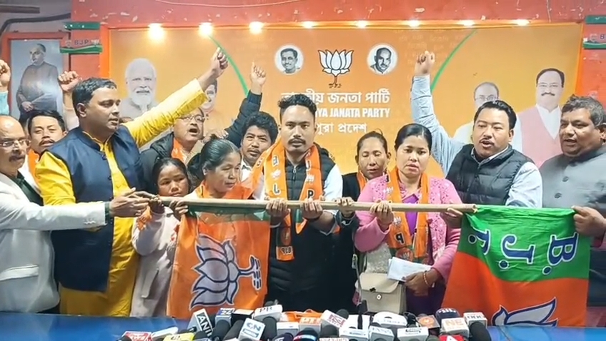 আগরতলা প্রতিনিধি,২৮ ডিসেম্বর :তিপ্রা মথা ও আইপিএফটি ছেড়ে একঝাঁক নেতৃত্ব আনুষ্ঠানিকভাবে ভারতীয় জনতা পার্টিতে যোগদান করে।রবিবার আগরতলার বিজেপির প্রদেশ কার্যালয়ে আয়োজিত এক যোগদান সভার মাধ্যমে যোগদান কর্মসূচি সম্পন্ন হয়।এদিন উপস্থিত ছিলেন বিজেপির প্রদেশ সাধারণ সম্পাদক বিপিন দেববর্মা, অফিস সম্পাদক মিহির সরকার, প্রদেশ মিডিয়া ইনচার্জ সুনীত সরকার সহ অন্যান্য নেতৃত্বরা।যোগদান সভার প্রথমে প্রয়াত অধ্যক্ষ বিশ্ববন্ধু সেনে’র প্রতি স্মৃতিচারণ করা হয়।এদিন বিজেপিতে যোগদান করা নতুন সদস্যদের দলীয় পতাকা হাতে তুলে দিয়ে বরণ করে নেয় প্রদেশ নেতৃত্বরা।এদিন যোগদান সভা শেষে সাংবাদিক দের প্রদেশ সাধারণ সম্পাদক বিপিন দেববর্মা বলেন, প্রধানমন্ত্রী ও মুখ্যমন্ত্রীর নেতৃত্বাধীন সরকারের উন্নয়নমূলক কর্মকাণ্ডে অনুপ্রাণিত হয়ে প্রতিদিন বিভিন্ন রাজনৈতিক দল ও সমাজের নানা স্তর থেকে মানুষ বিজেপিতে যোগ দিচ্ছেন। উন্নয়নের ধারাবাহিকতা ও স্থিতিশীল শাসনের জন্যই এই যোগদান বলে তিনি উল্লেখ করেন।